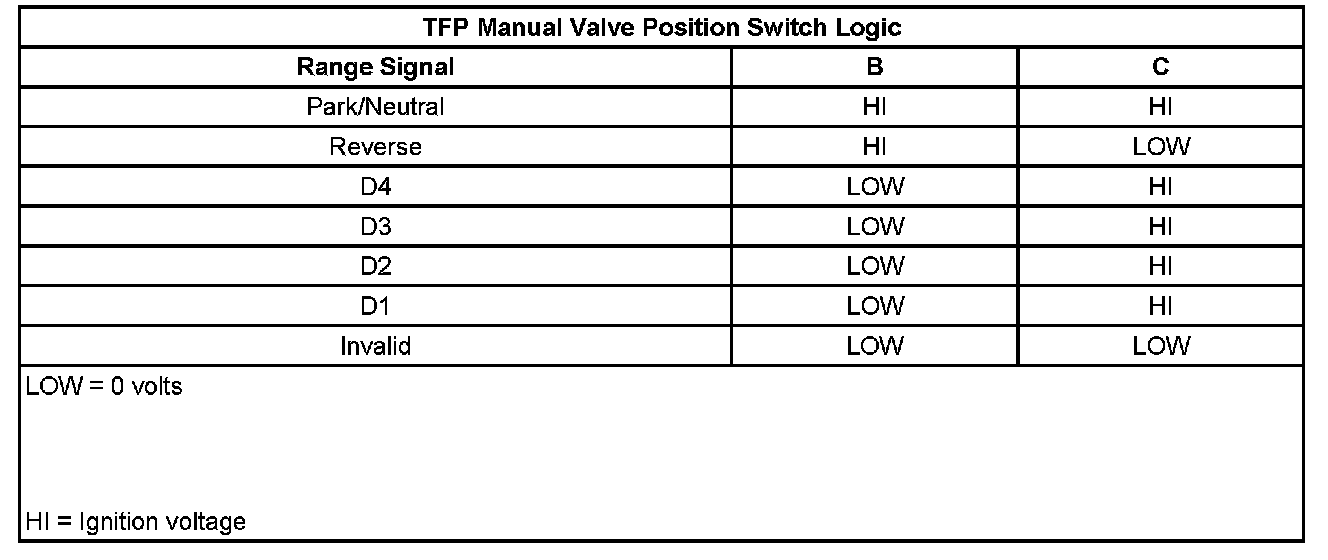 Transmission Fluid Pressure Manual Valve Position Switch Logic: