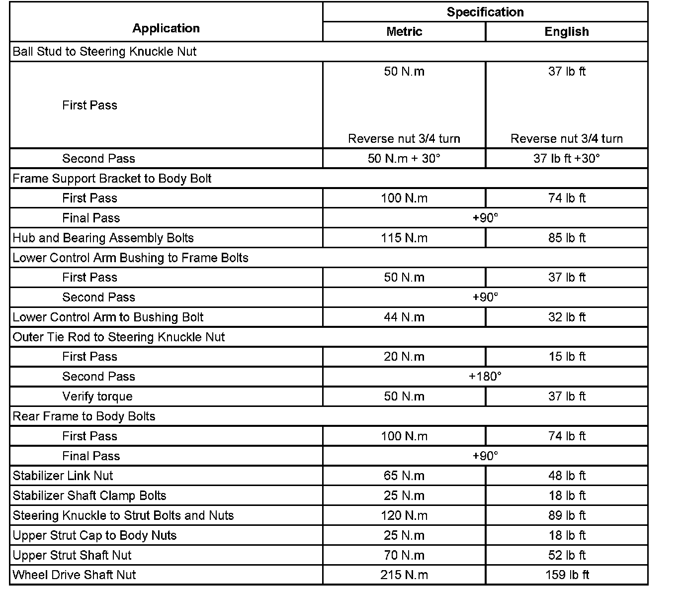 Fastener Tightening Specifications: