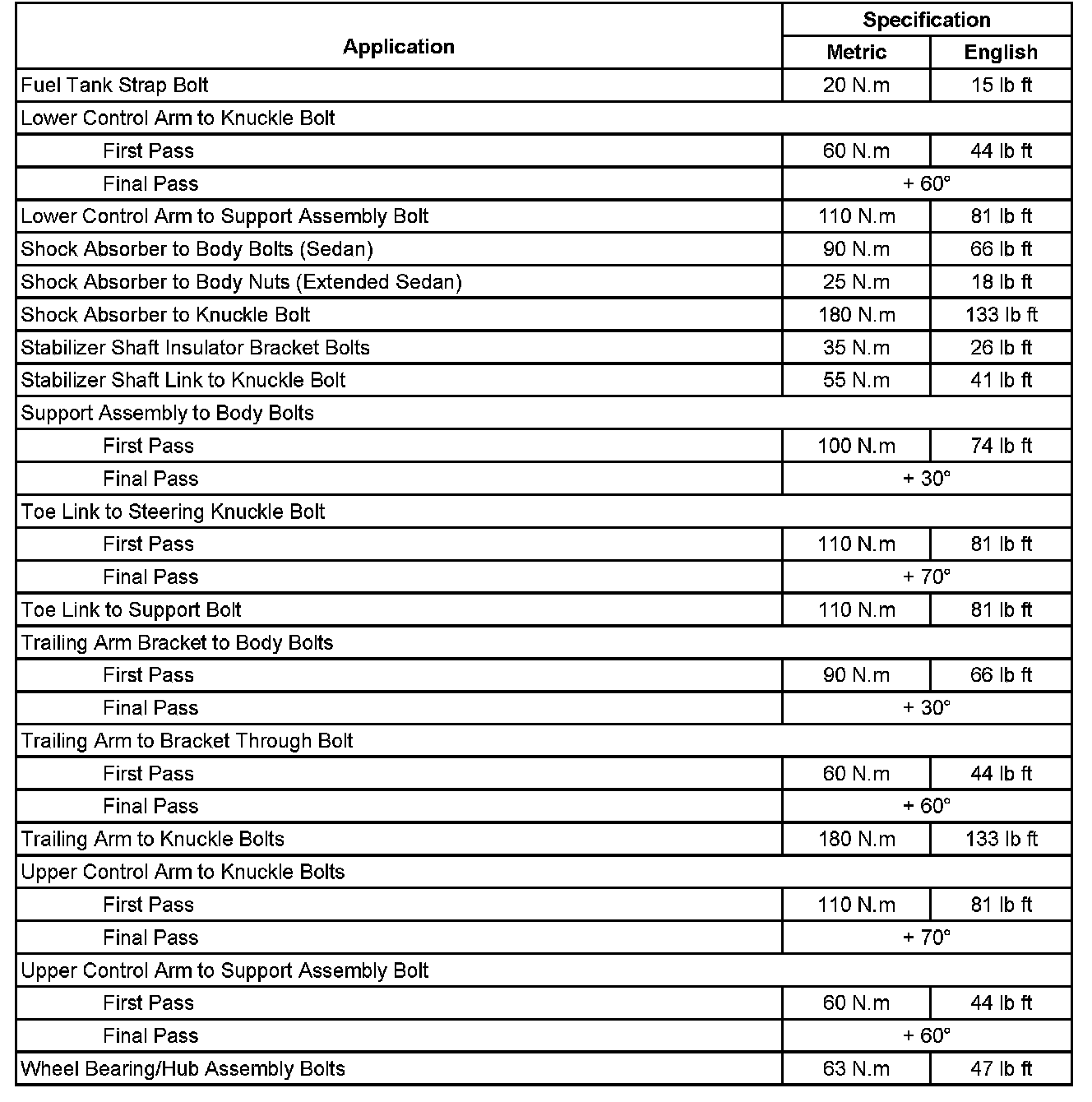 Fastener Tightening Specifications: