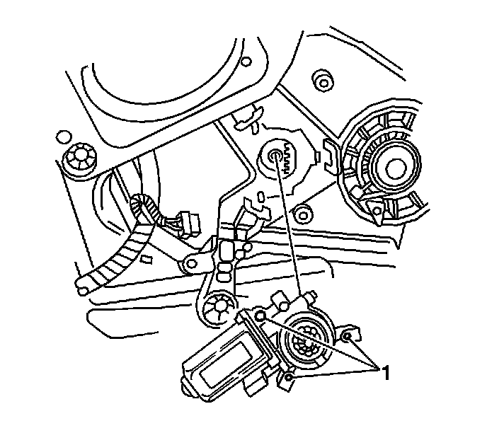 2. Install the front door window regulator motor to regulator screws (1).