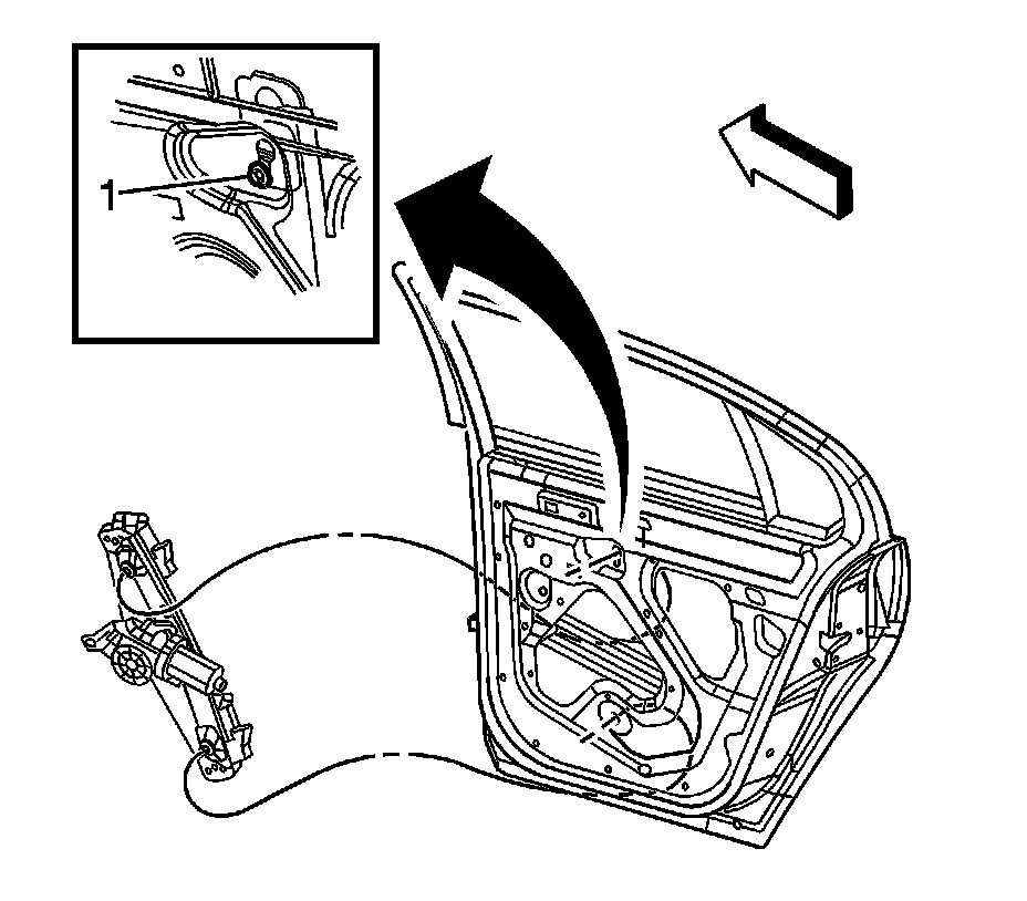 9. Remove the bolts from the rear door window regulator (1).