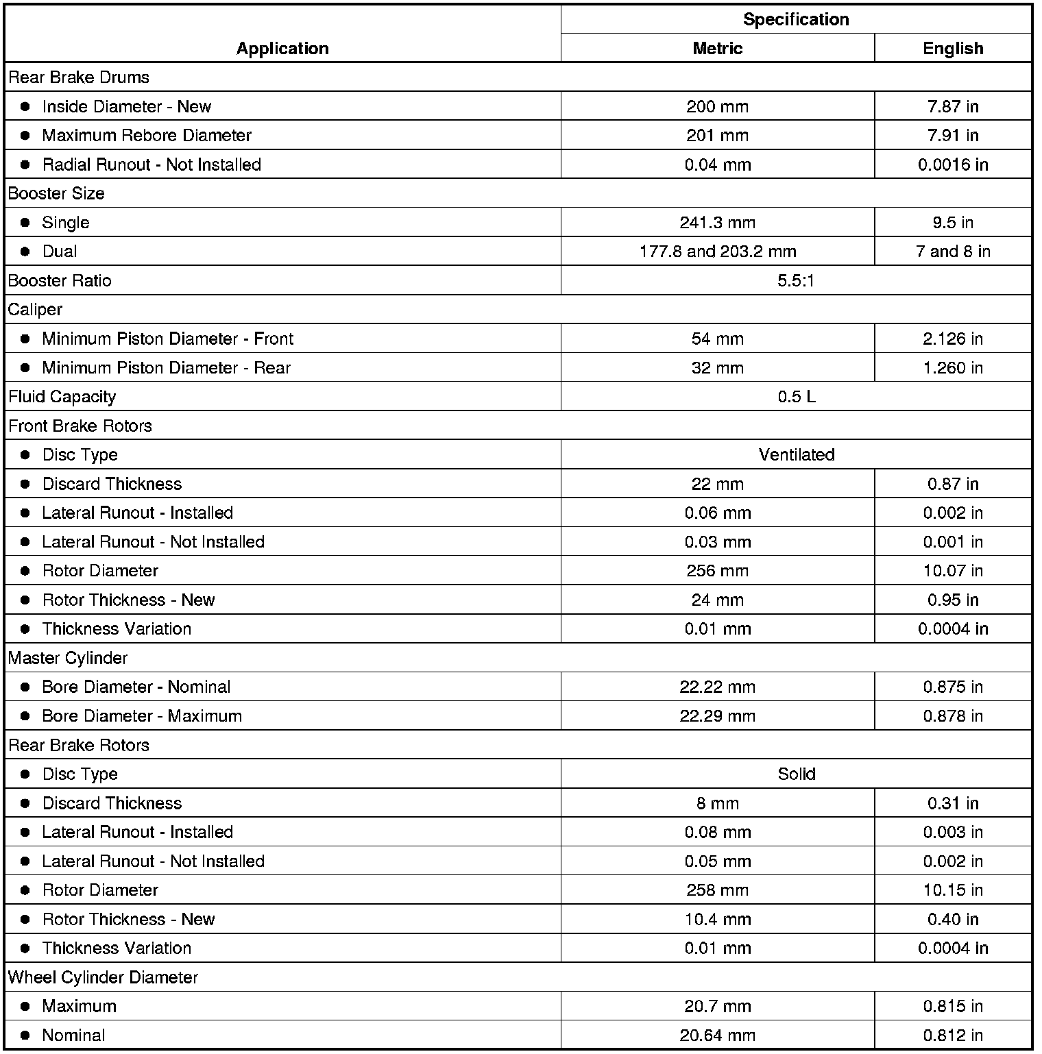Brake System Specifications