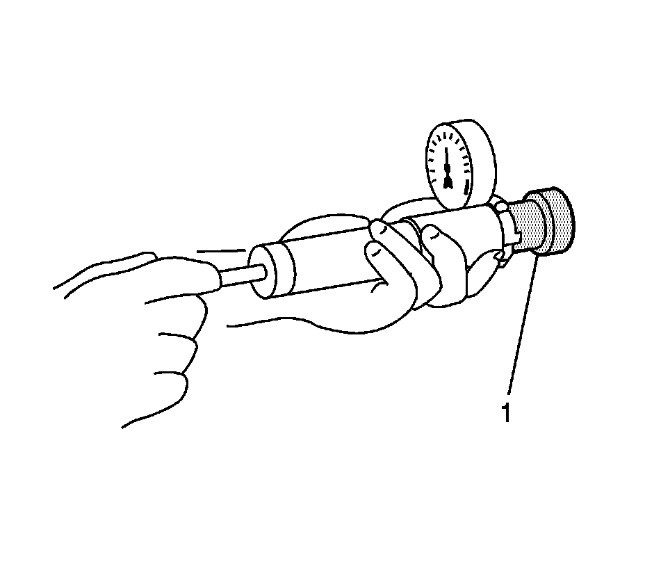 3. Install a suitable cooling system pressure tester to the cap using the J-36649 (1).