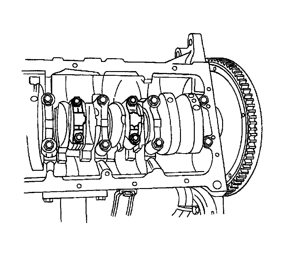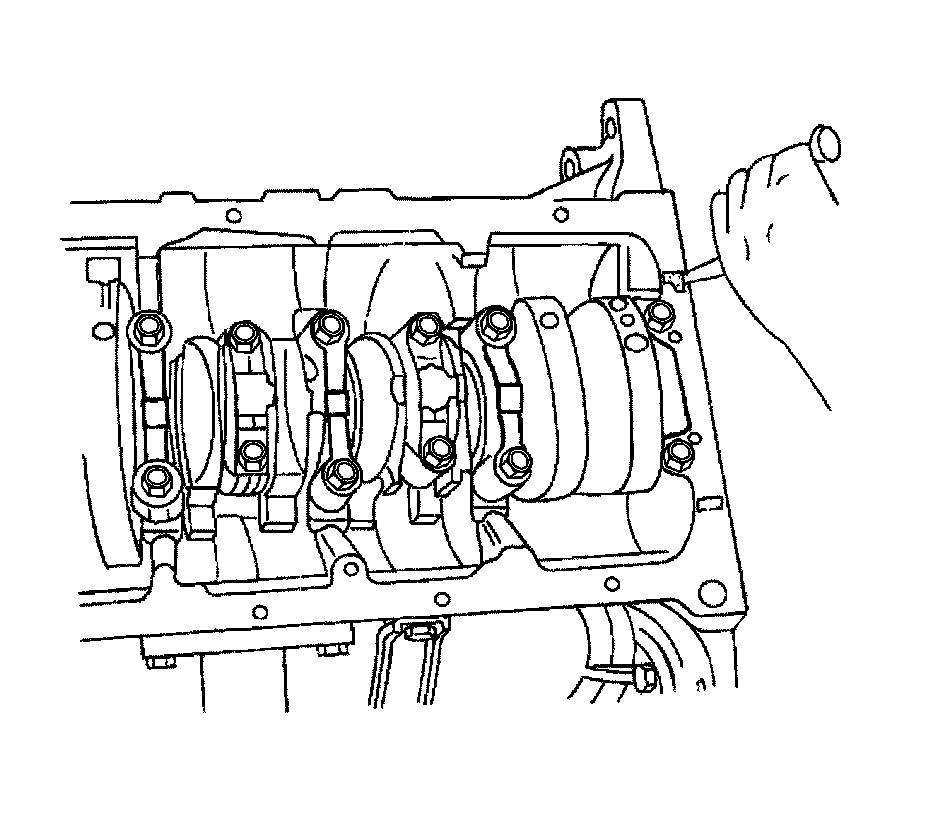 Important: Grease the crankshaft journals and lubricate the crankshaft bearings slightly so that the plastic gaging thread does not tear when the crankshaft bearing caps are removed.