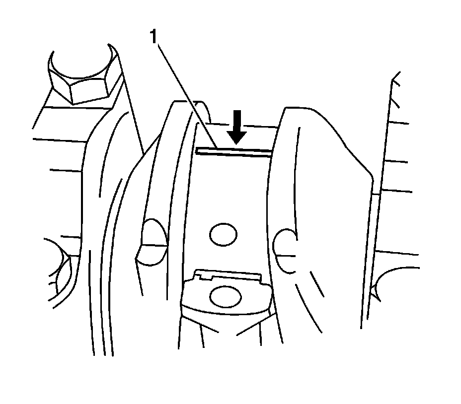 18. Cut the plastic gaging threads (1) to the length of the connecting rod bearing width. Lay them axially between the connecting rod journals and the connecting rod bearings.