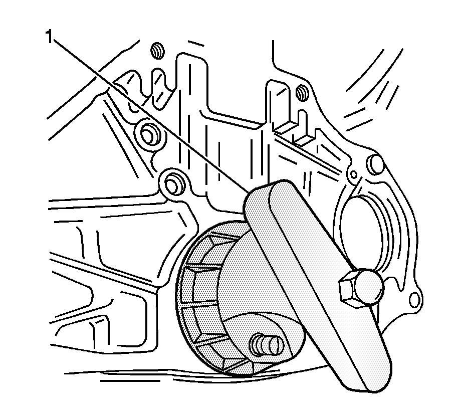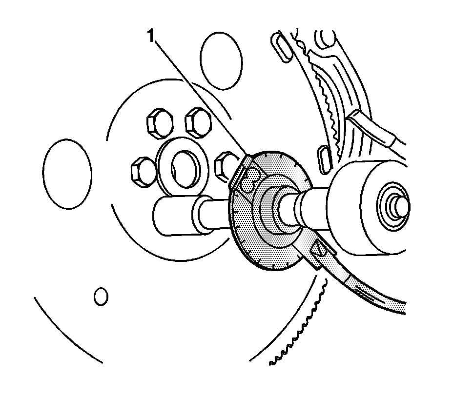 Tighten the flywheel bolt to 65 Nm (48 lb ft). Use the J 45059 or the KM-470-B (1) to tighten the flywheel bolts another 30 degrees plus 15 degrees. For the automatic transaxle, tighten the flexible plate bolts to 45 Nm (33 lb ft).