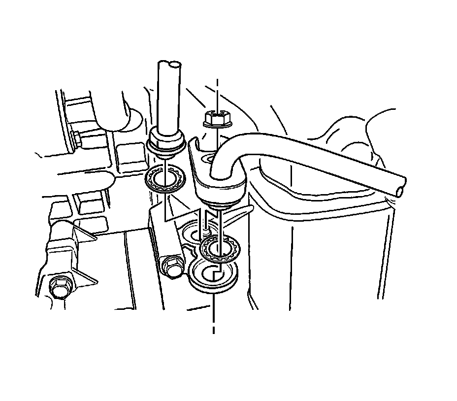4. Install new sealing washers to the suction hose and the discharge hose mounting.