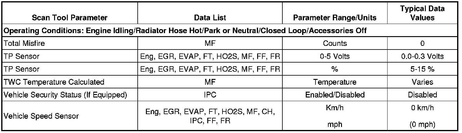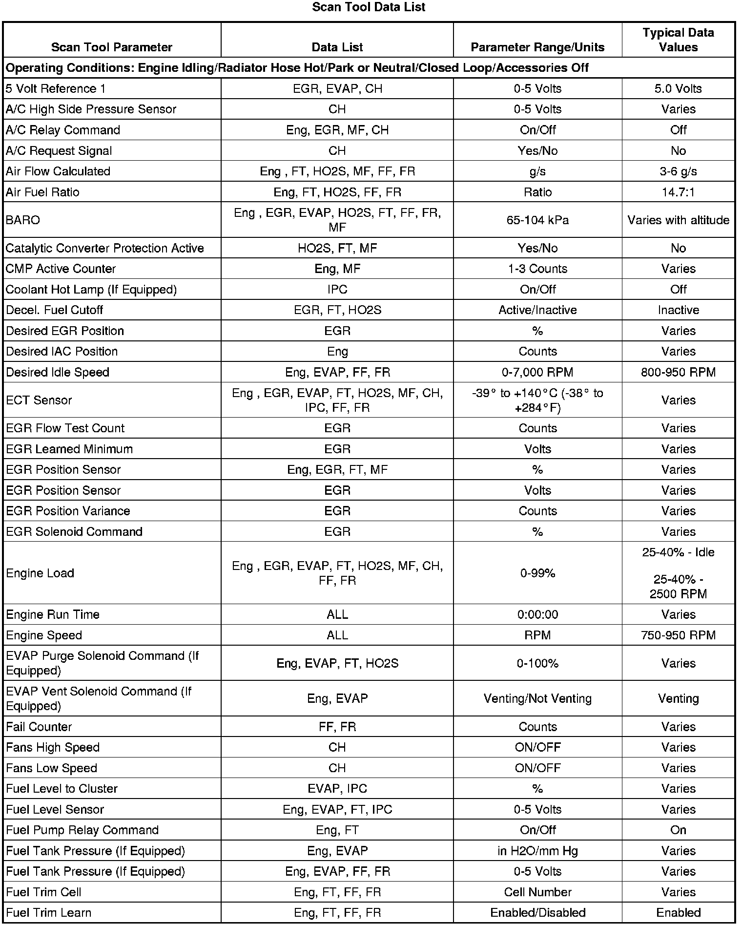 The Engine Scan Tool Data List contains all engine related parameters that are available on the scan tool. The list is arranged in alphabetical order. A parameter may appear in any one of the data lists, and in some cases may appear more than once, or in more than one data list in order to group certain related parameters together.