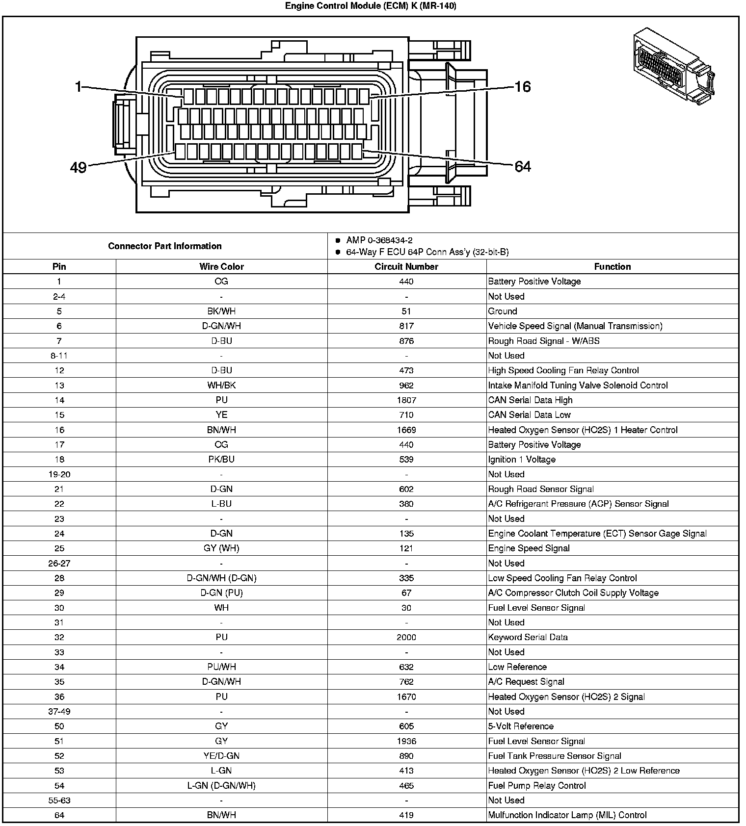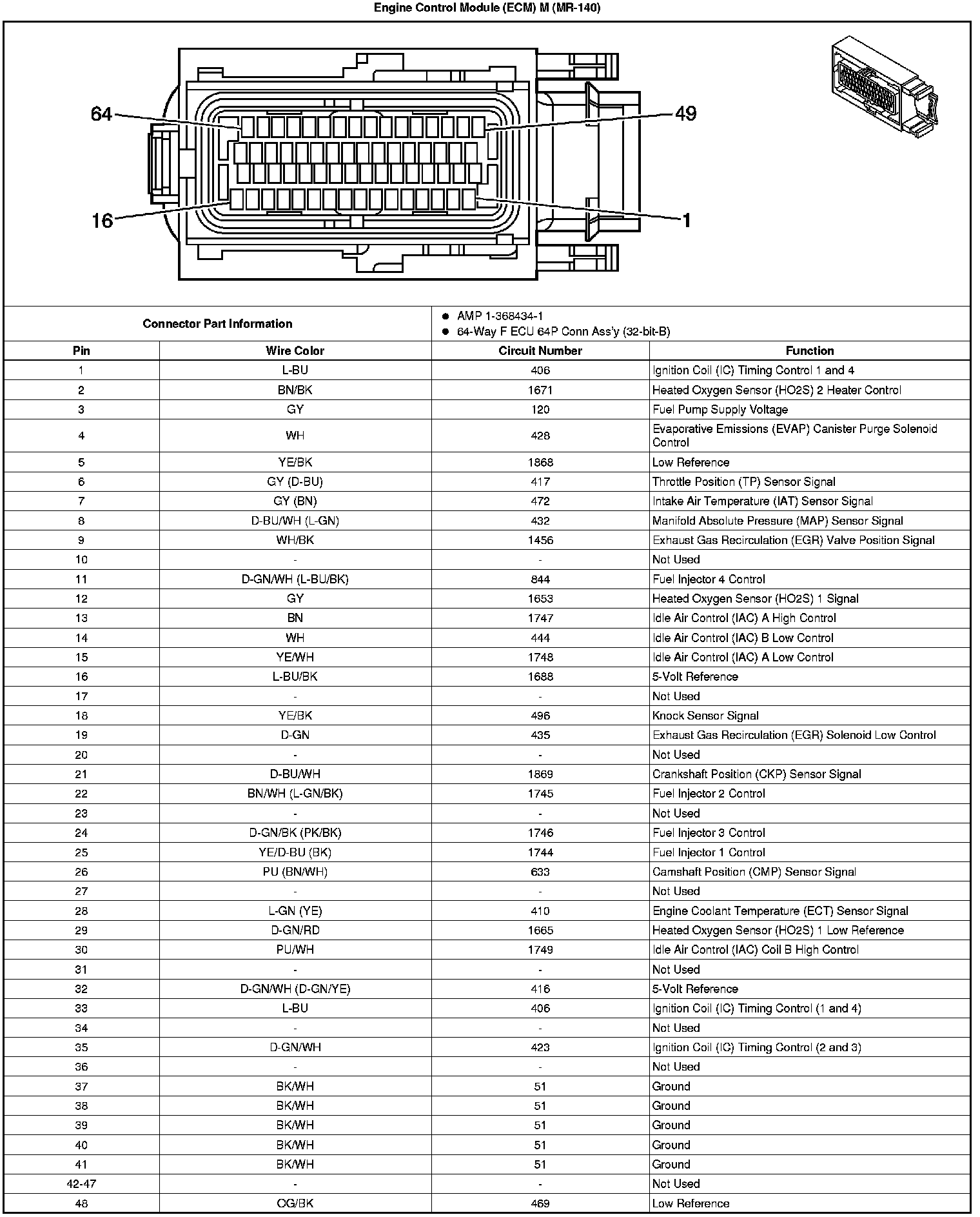 Engine Control Module Connector End Views (w/o Throttle Actuator Control)