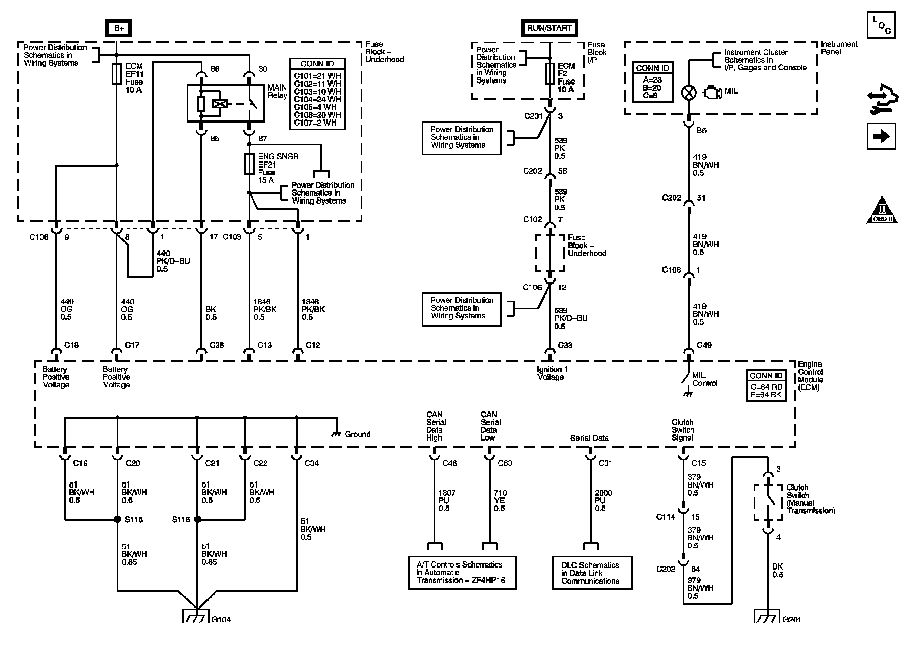 Module Power, Ground, Serial Data, Malfunction Indicator Lamp (MIL)