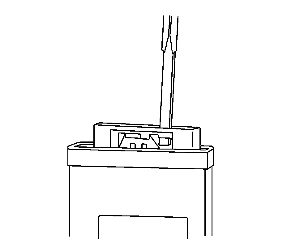 5. Insert the J 38125-11A (GM P/N 12094430) into the terminal release tang access slot located behind the access panel of the connector and press down on the terminal while carefully pulling the terminal out of the connector. Always remember never use force when pulling a terminal out of a connector. If the terminal is difficult to remove, repeat the entire procedure.