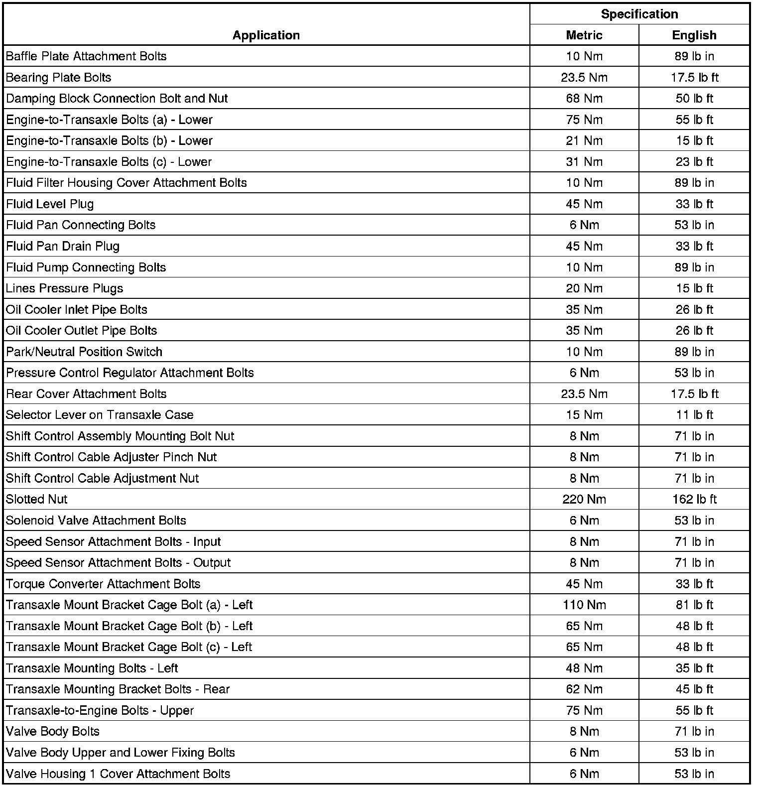 Fastener Tightening Specifications