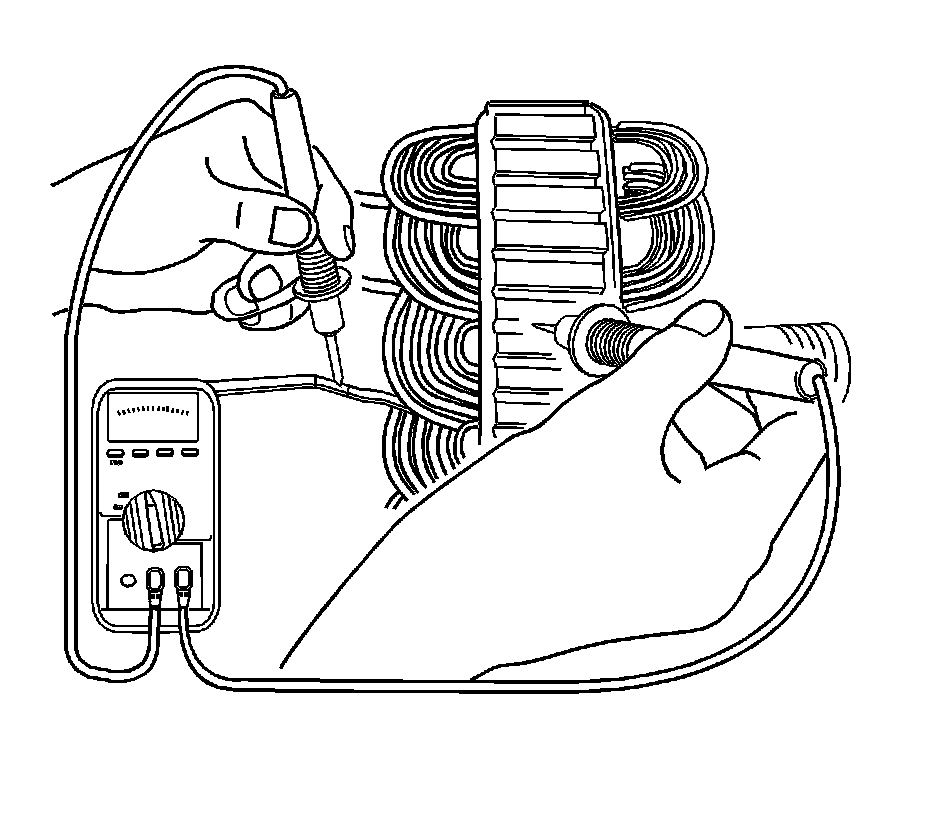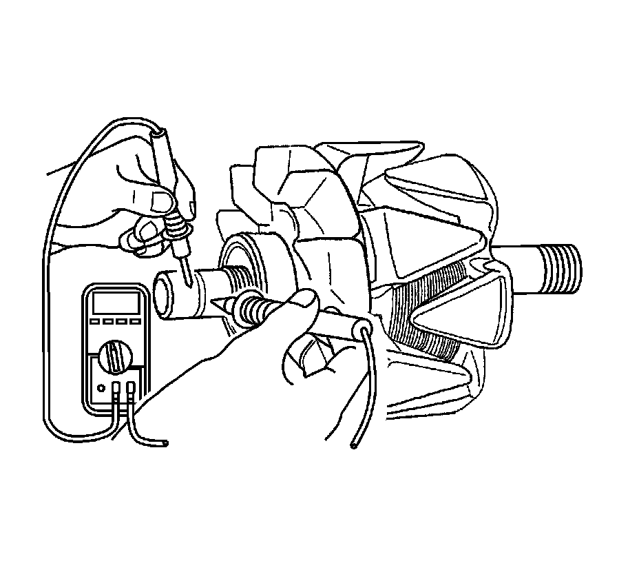 17. Test the rotor for open and short circuits. The reading should be 1.7-2.3 ohms, or the rotor should be replaced.