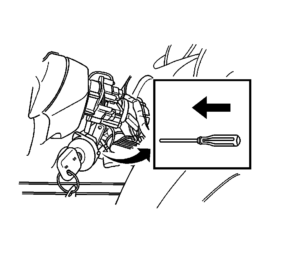 4. With the key in the ignition turned to the position designated ACC, remove the lock cylinder by pressing down the detent spring and pulling the lock cylinder out of the switch cylinder housing.
