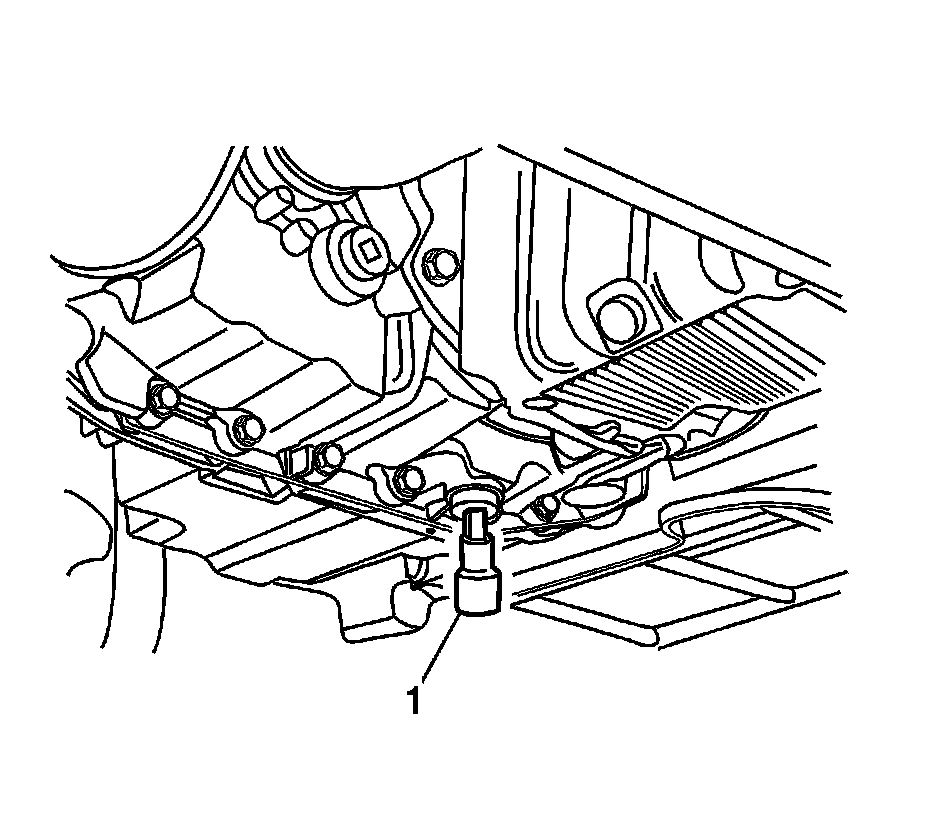 5. Using DT 46475 (1), remove the transaxle fluid drain plug. Drain the transaxle fluid.