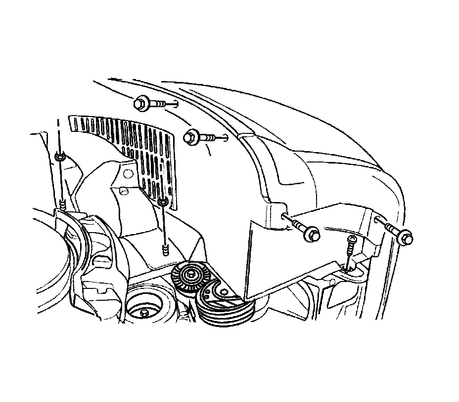 3. Remove the bolts and the screws and the front wheel well splash shield.