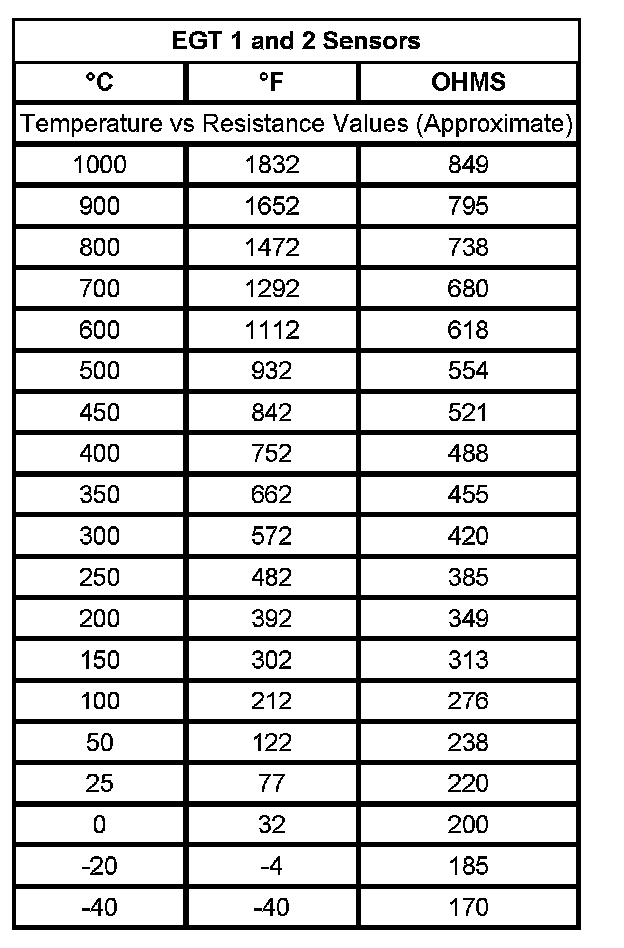 Temperature Versus Resistance (EGT Sensors)