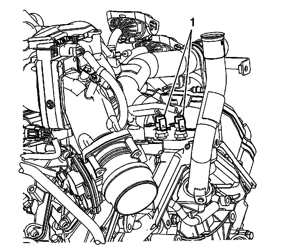 2. Disconnect the engine wiring harness electrical connector (1) from the appropriate ECT sensor.