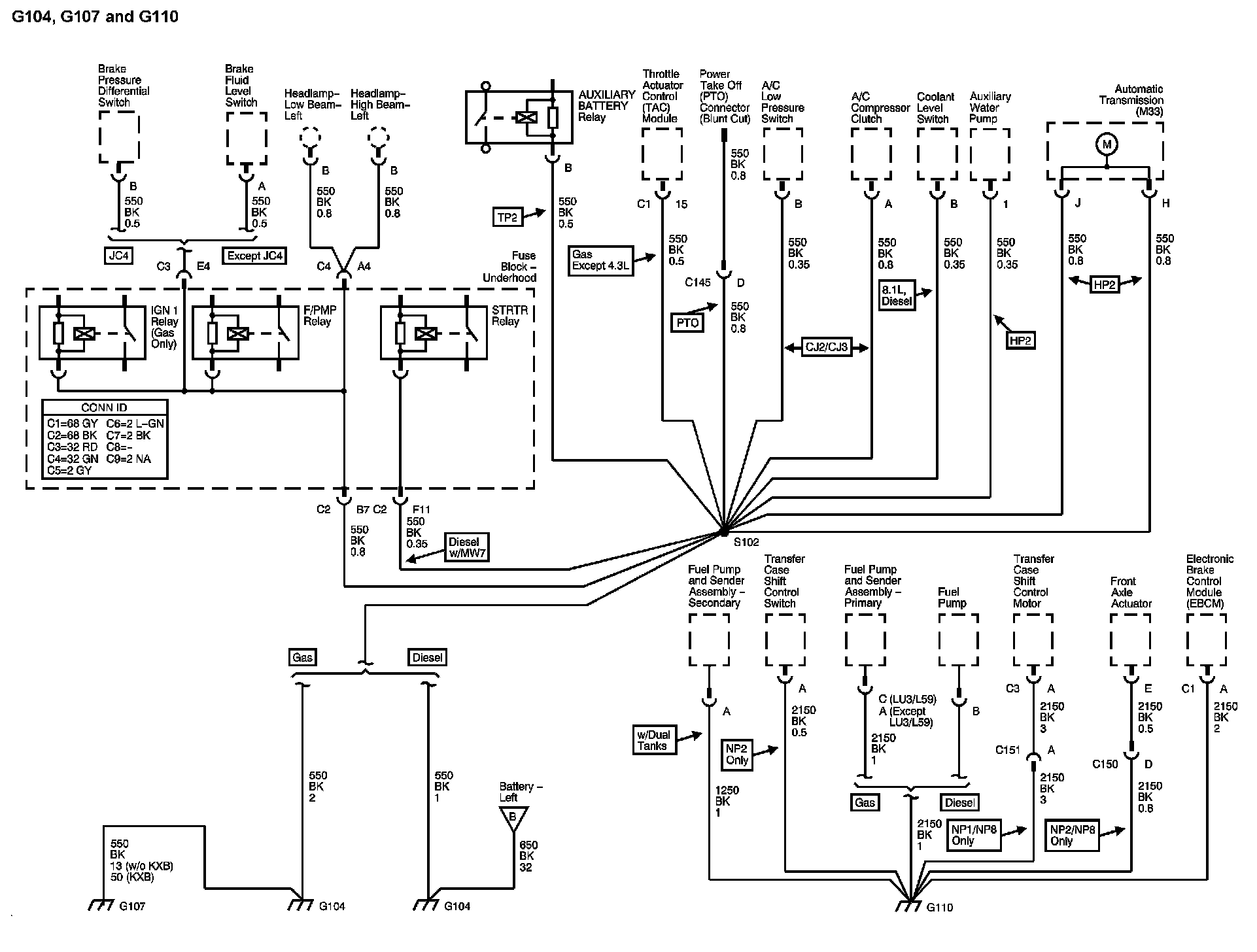The locations for the Connectors, Grounds, Splices, and Grommets shown within these diagrams can be found via their numbers at Vehicle Locations.