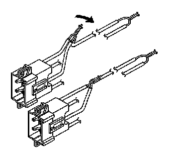 15. Twist together 2 connector wire leads, the low circuits from both stages of the steering wheel module, to one set of deployment wires. Refer to SIR Connector End Views in order to determine the correct circuits.