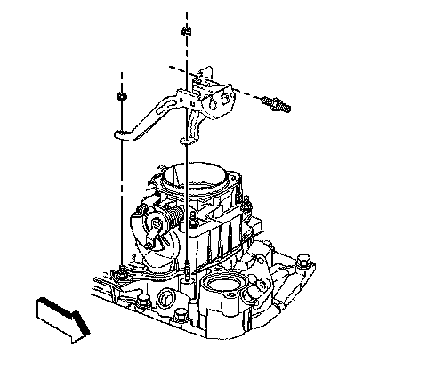 11. Remove the accelerator cable bracket nuts and stud.