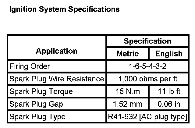 Ignition System Specifications: