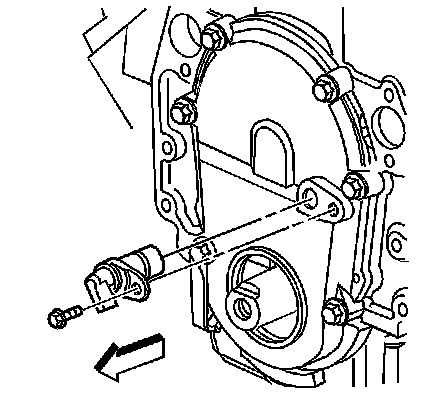 3. Slide the front cover towards the engine block (5) while keeping the cover raised.