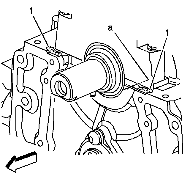 3. Apply sealant in 2 places (1) on the engine block where the front cover meets the oil pan. Refer to Sealers, Adhesives, and Lubricants for the correct part number.