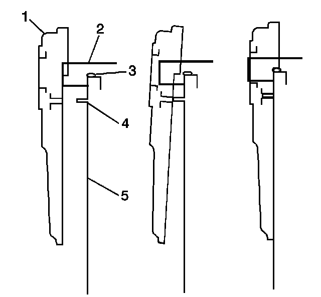 4. Lower the cover down over the dowel pin (4), allowing the front cover to rest on the sealant (3).
