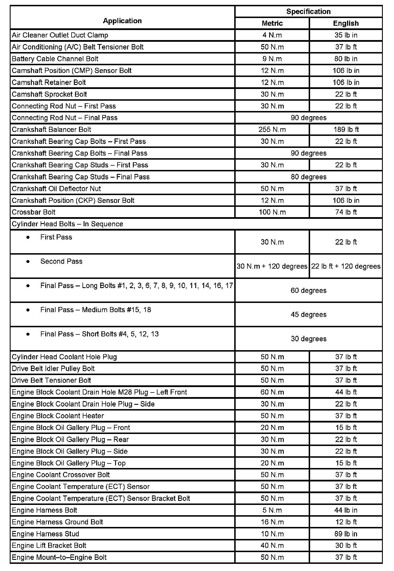 Fastener Tightening Specifications (Part 1):
