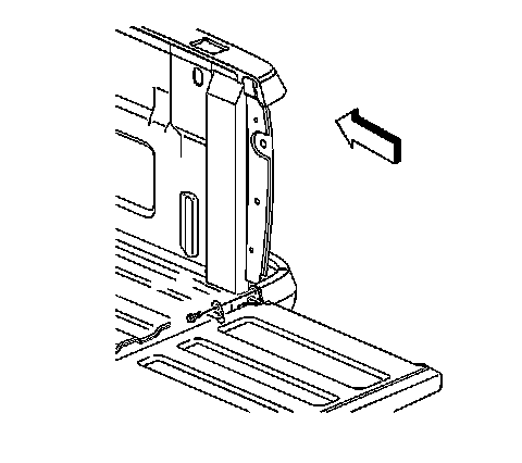 6. With an assistant, remove the endgate from the left body side hinge by sliding to the right and lifting.