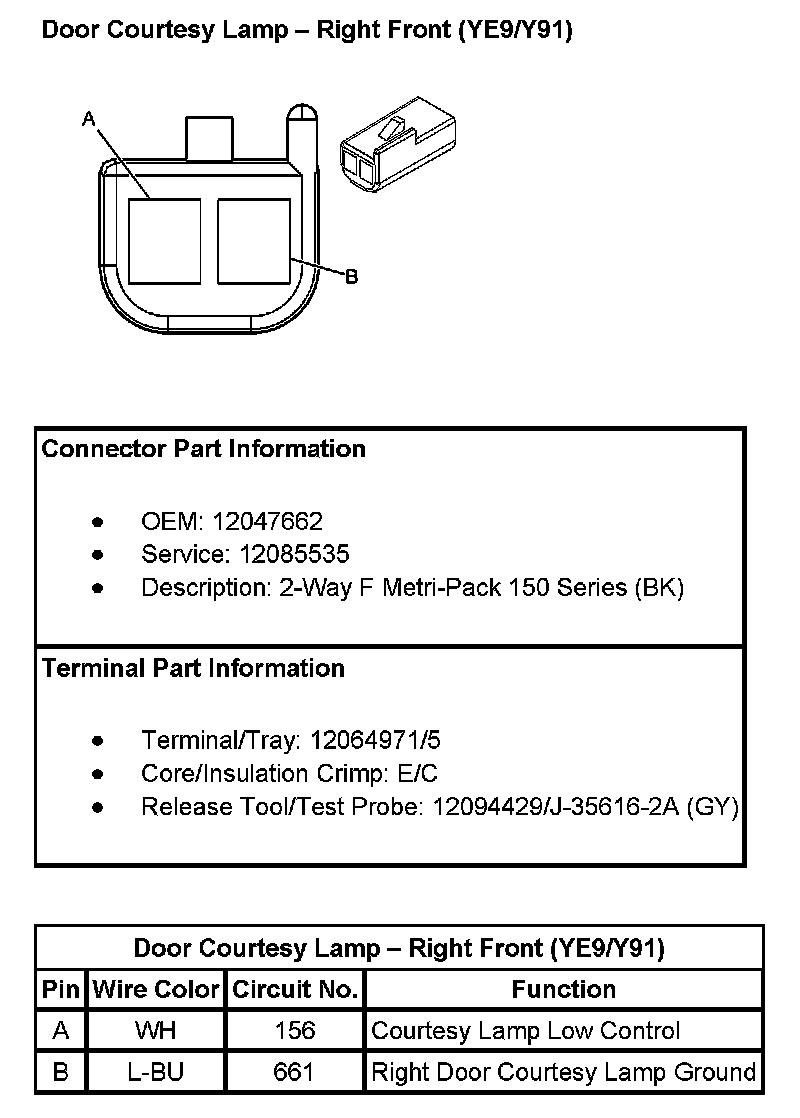 Door Courtesy Lamp - Right Front (With RPO Code YE9/Y91):