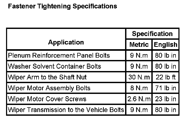 Wiper and Washer Systems: Specifications