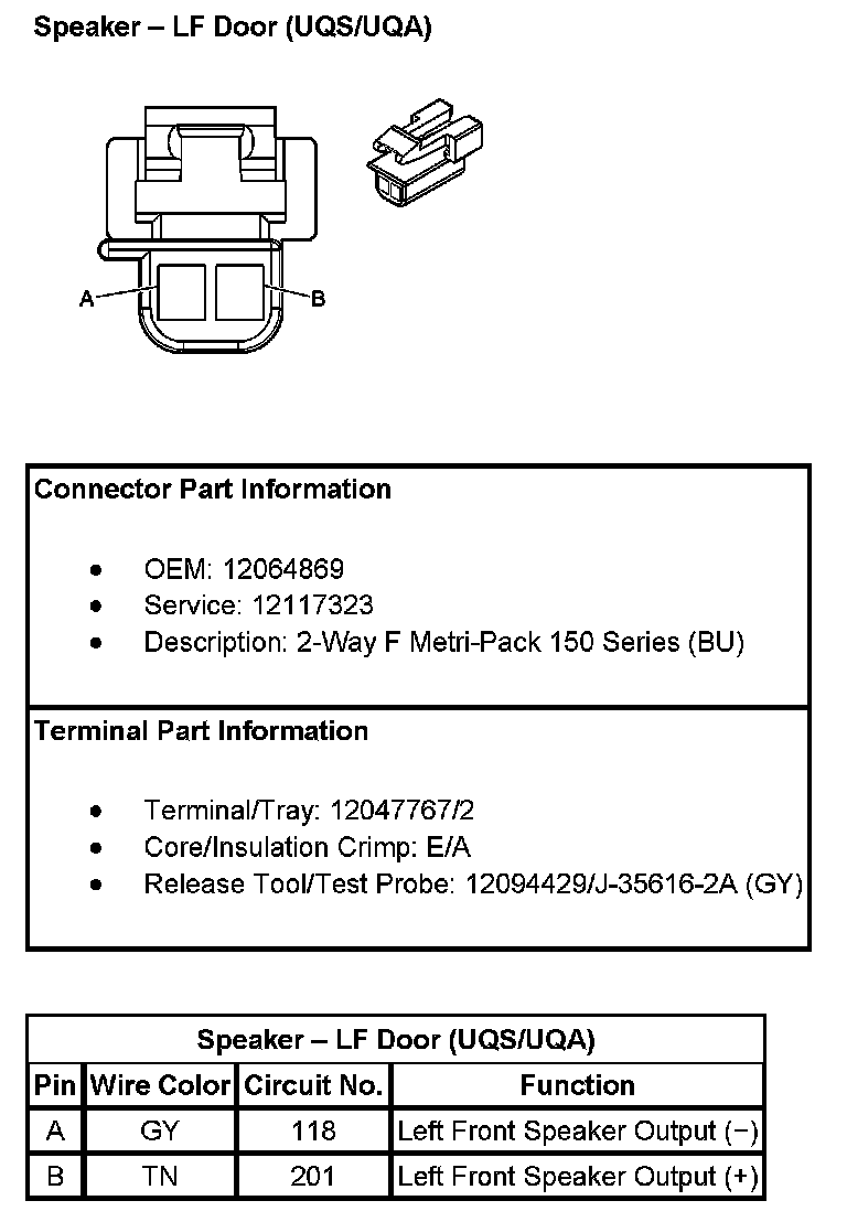 Speaker - LF Door (With RPO Codes UQS/UQA):