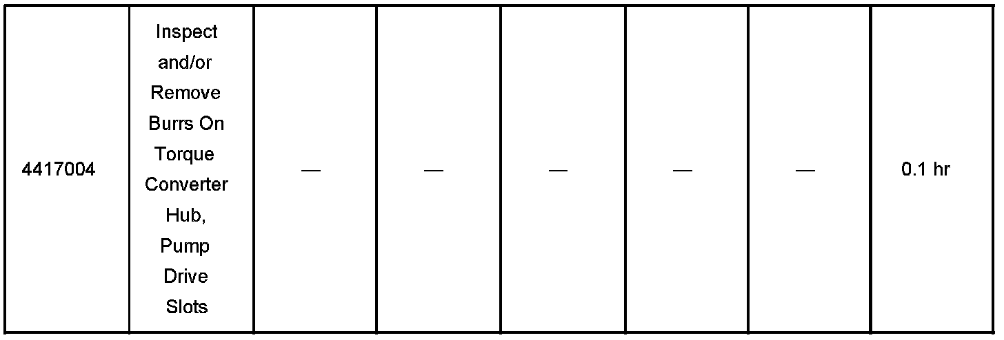 Investigation of 2006 transmissions has shown small scratches or cuts in the torque converter hub-to-pump seal (243). These scratches or cuts may be caused by small burrs on the torque converter hub, pump drive slots.