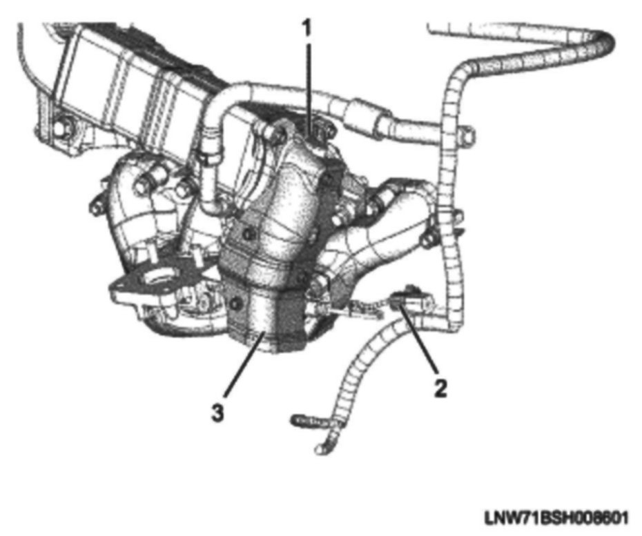 - Disconnect the EGR cooler IN temperature sensor connector (2).