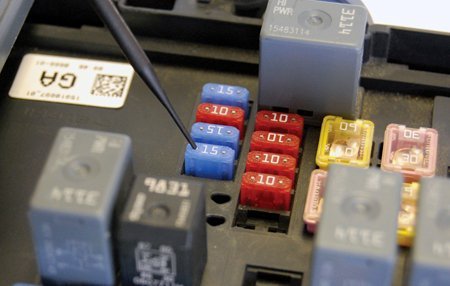 Depending on the operation of the circuit, the relay contacts will open or close, and voltage will be either present or not present at the fuse. A test lamp can be used to verify this change by touching the small metal portion on top of the fuse.