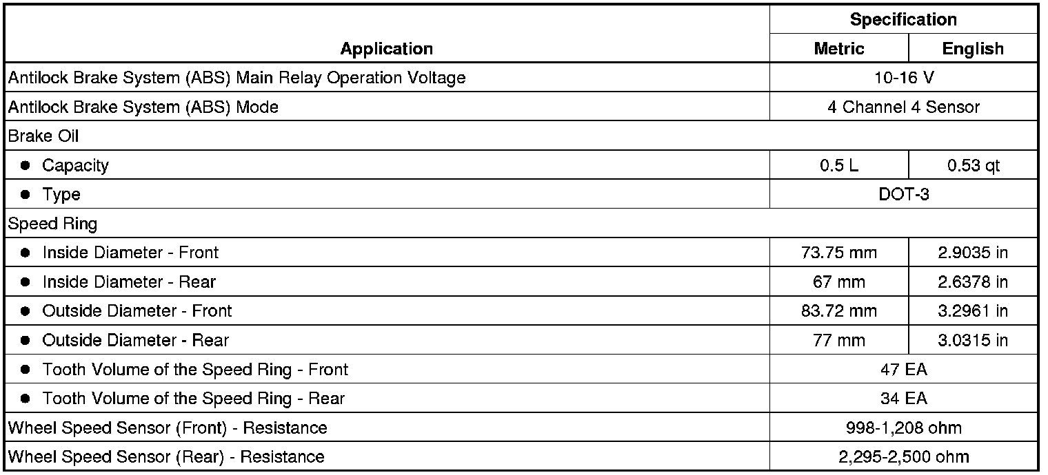 ABS Component Specifications