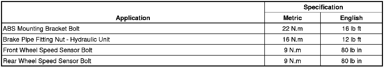 Fastener Tightening Specifications