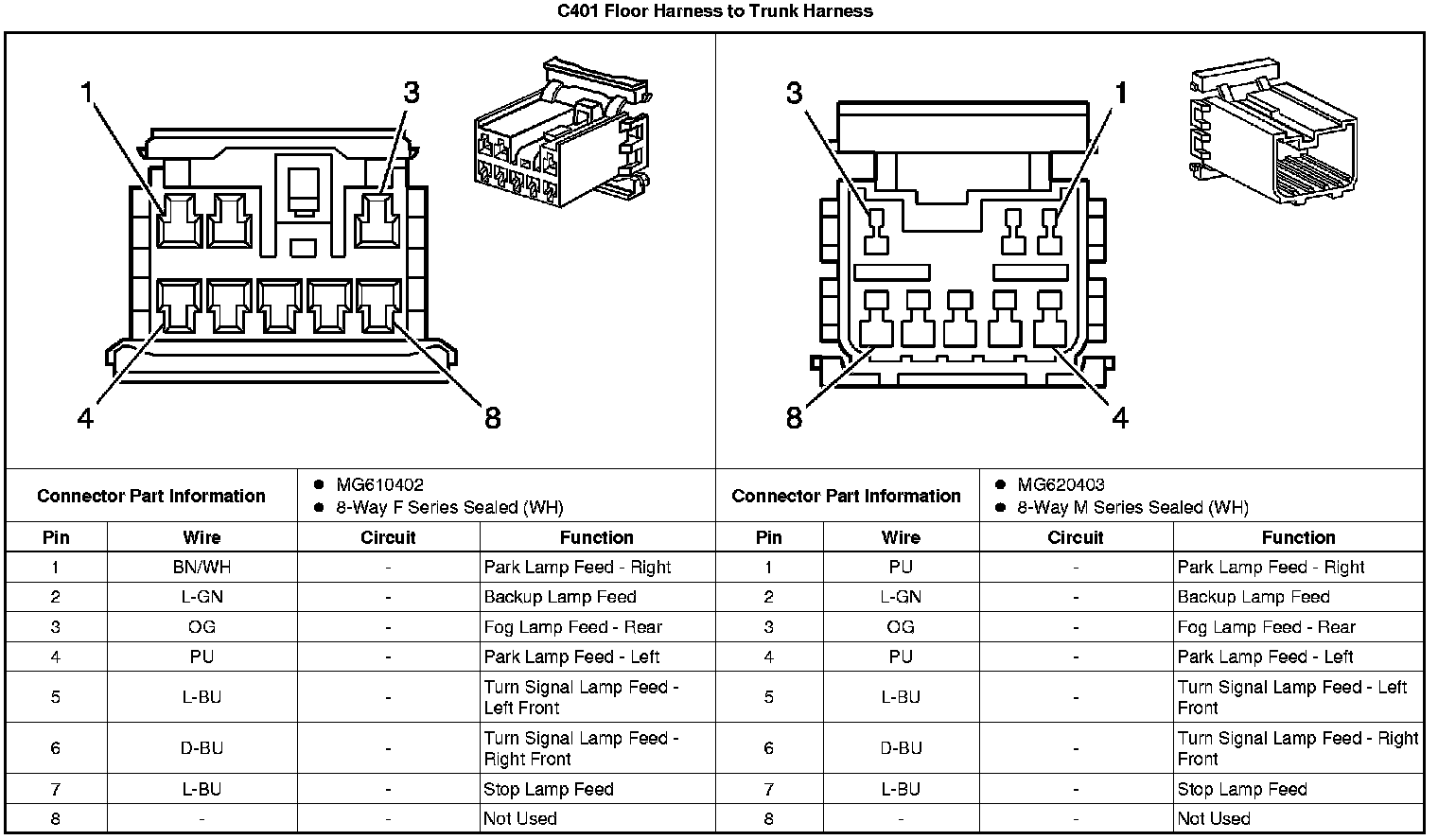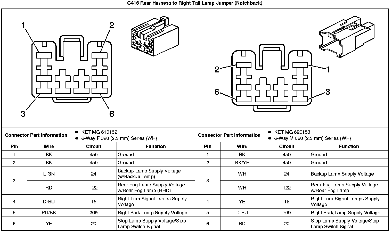 Inline Harness Connector End Views (Notchback)
