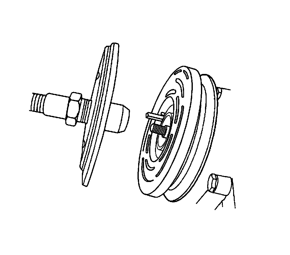 3. Align the clutch hub key with the shaft keyway. Place the clutch drive plate and hub assembly onto the compressor shaft.