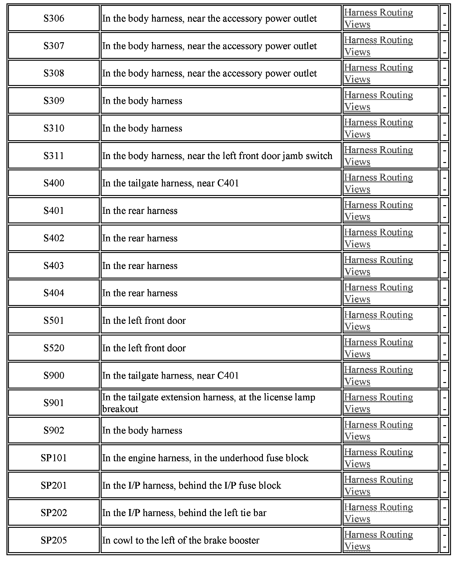 Master Electrical Component List (Hatchback)