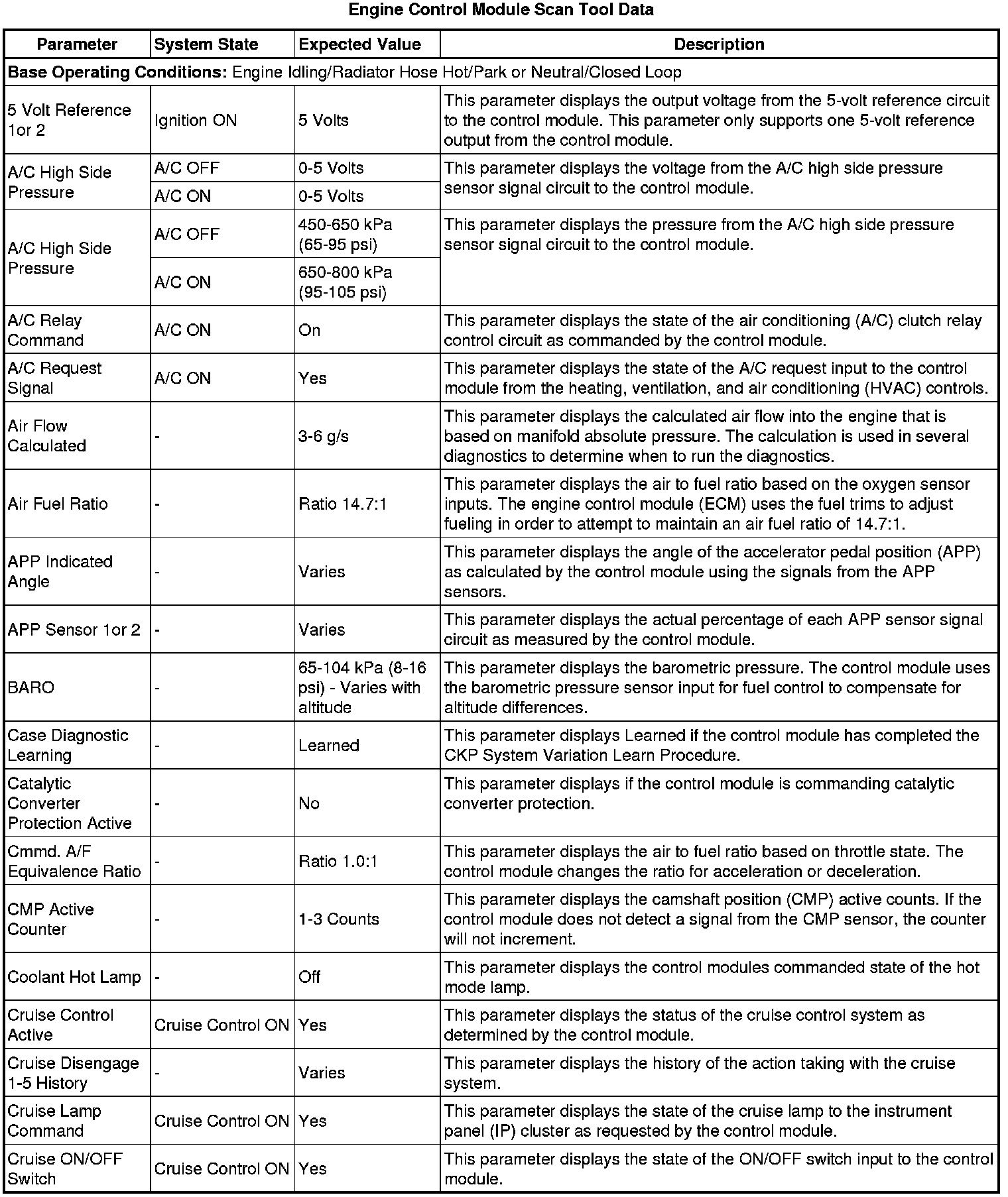 The Engine Control Module Scan Tool Data List contains all engine-related parameters that are available on the scan tool. This is a master list arranged in alphabetical order and not all the parameters listed are in every engine platform.