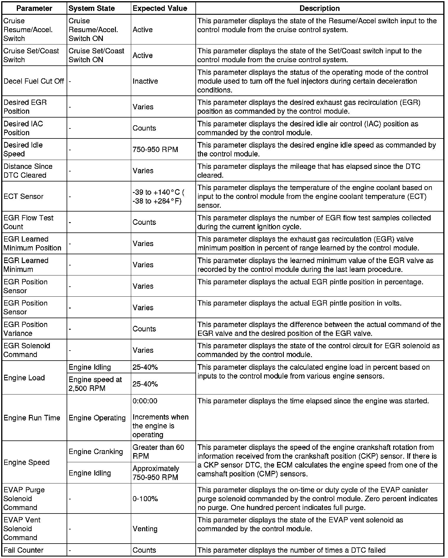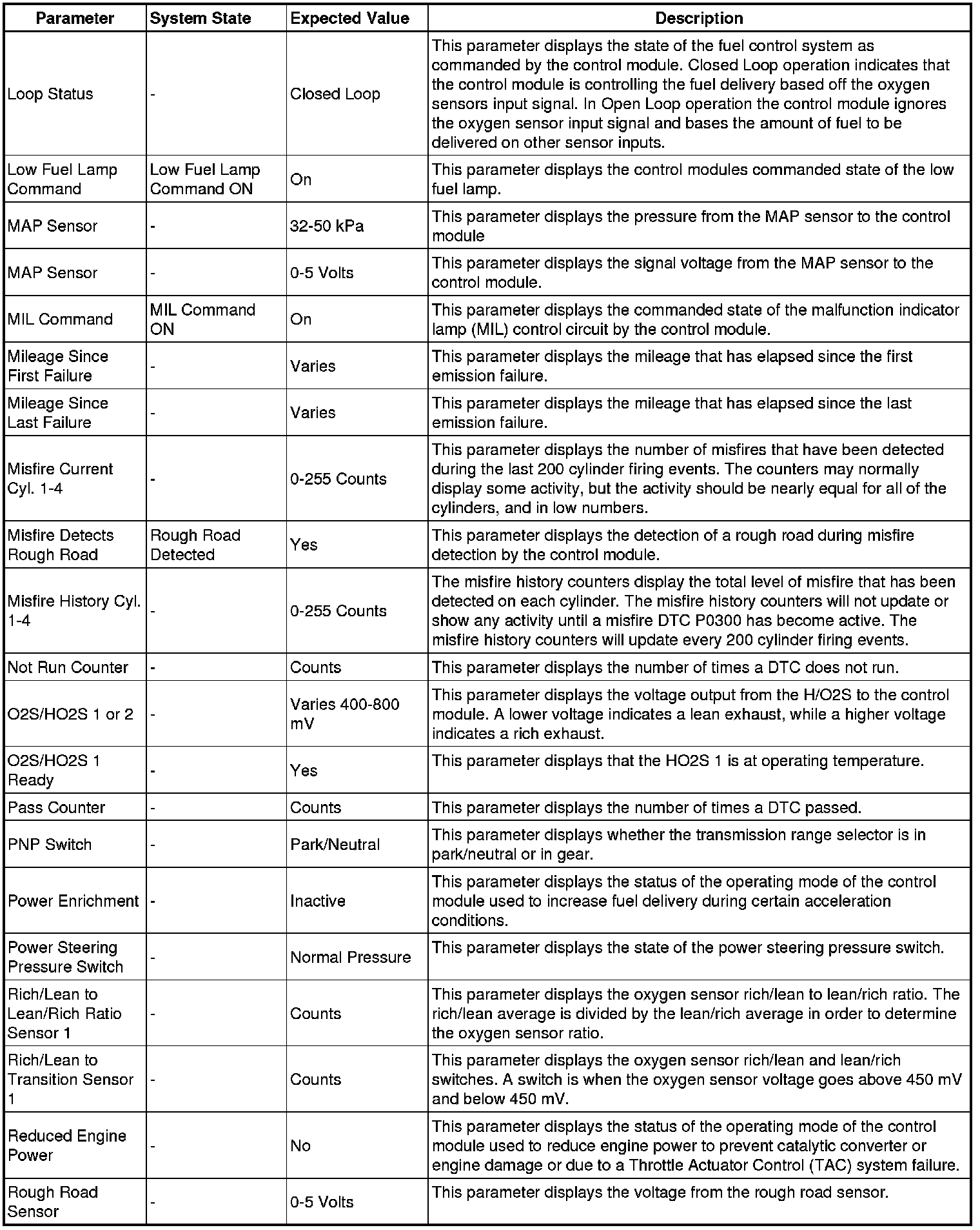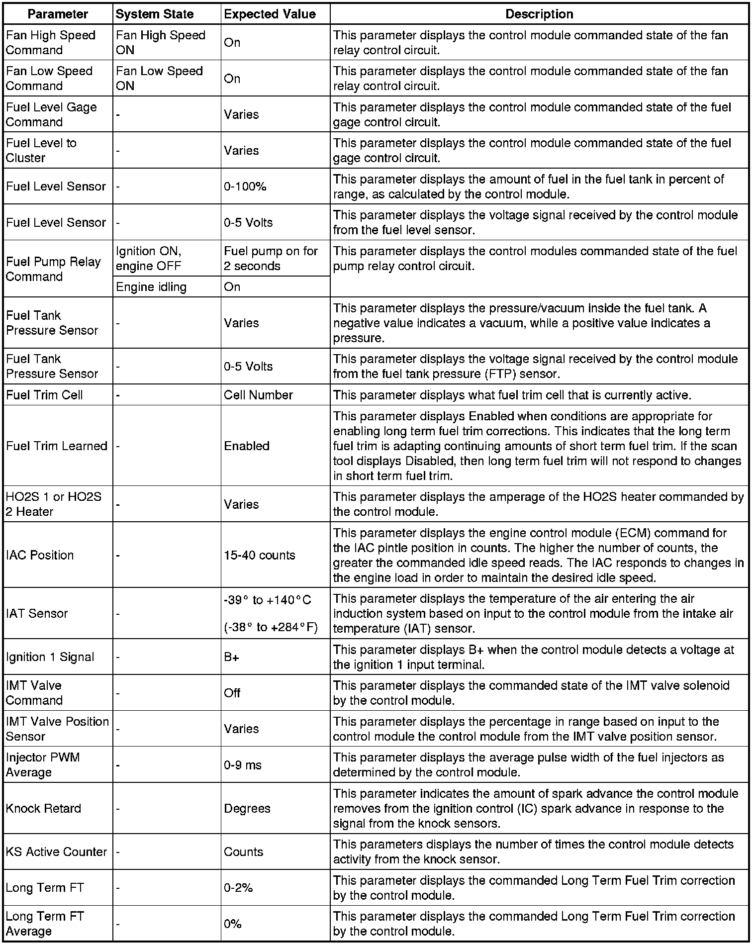 The scan tool values from a properly running engine may be used for comparison with the engine you are diagnosing. The Engine Scan Tool Data List represents values that would be seen on a normally running engine.