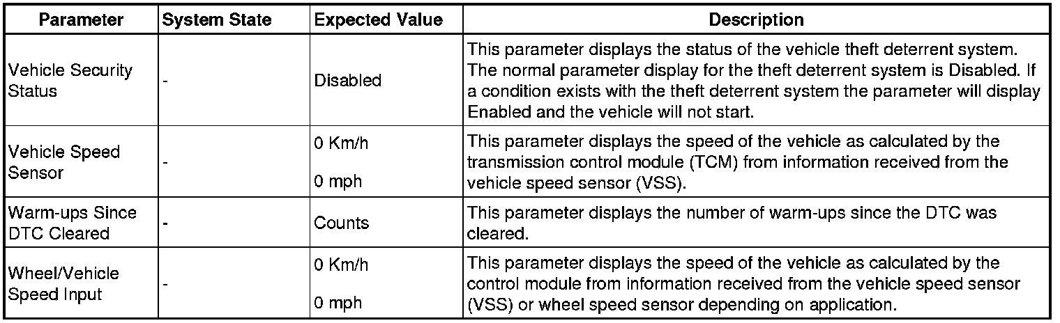 Only the parameters listed below are referenced in this service manual for use in diagnosis.
