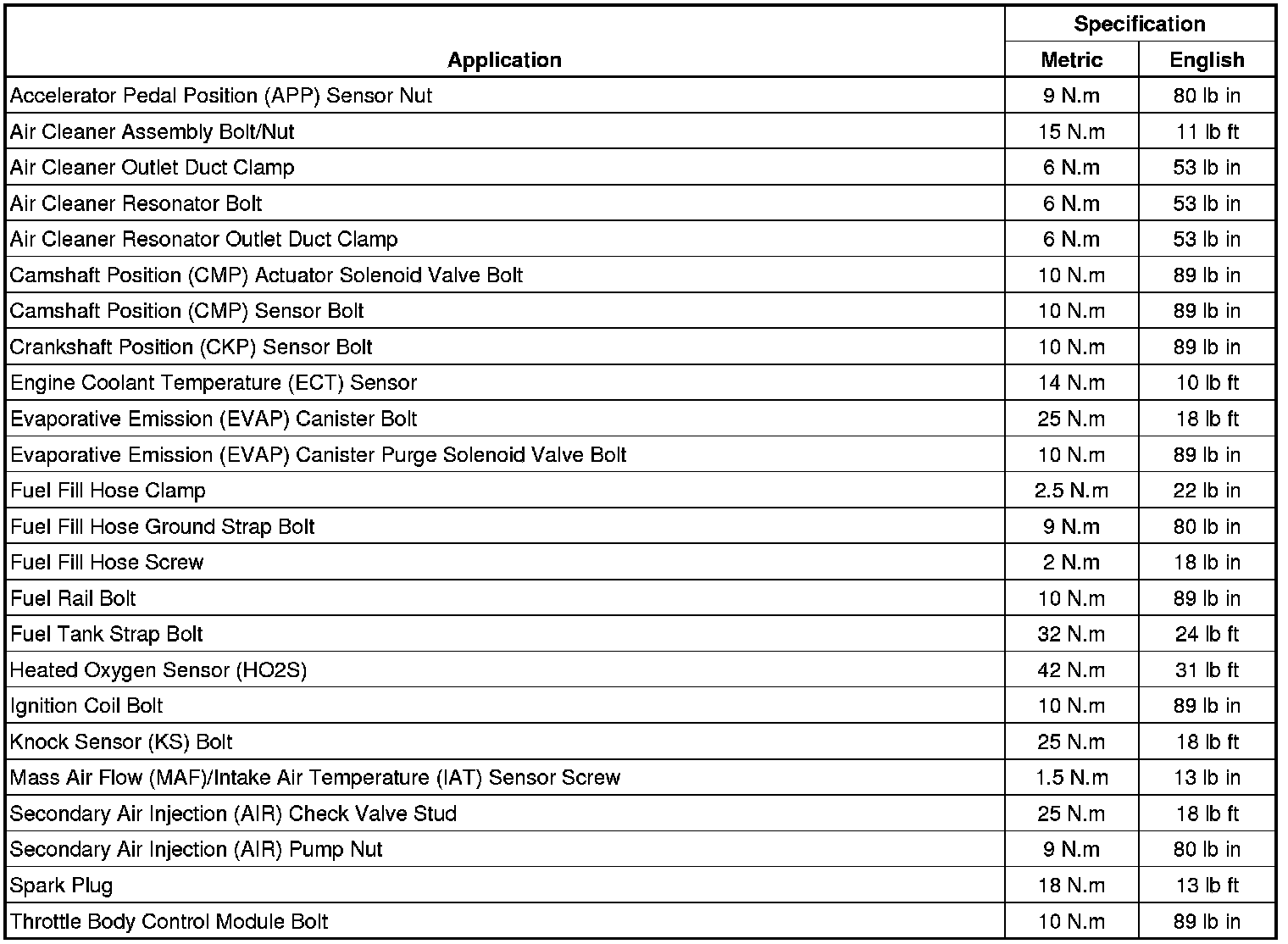 Fastener Tightening Specifications