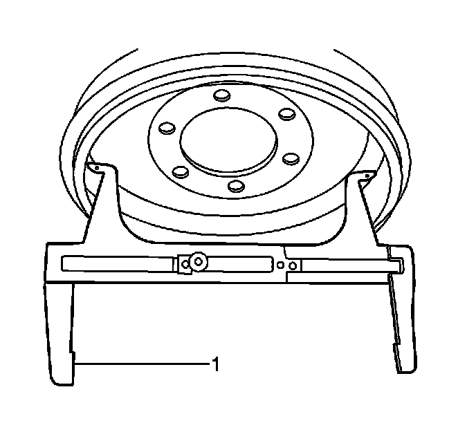 4. Using the J 21177-A (1), measure the rear brake drum. Refer to Brake Drum Diameter Measurement (Brake Drum Diameter Measurement) .