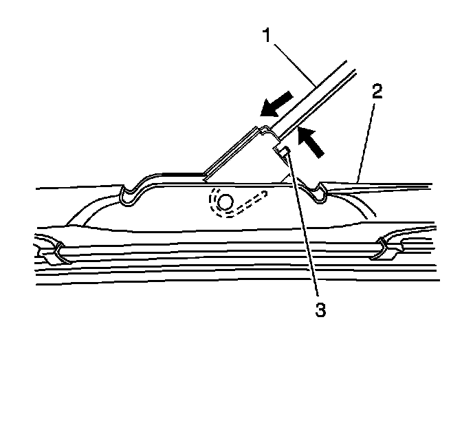 1. Install the wiper arm blade (2) to the new wiper arm (1).