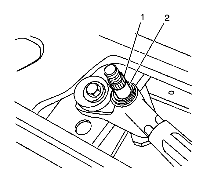 2. Lift the wiper blade off the windshield and install the wiper arm (1) to the wiper arm pivot shaft (2).