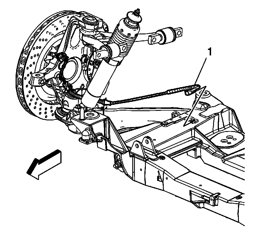 1.Disconnect the wheel speed sensor wiring harness (1) from the crossmember.